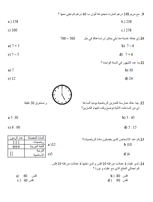 خطة علاجية للطلاب الضعاف في مادة الرياضيات للصف الثالث لم يسبق له